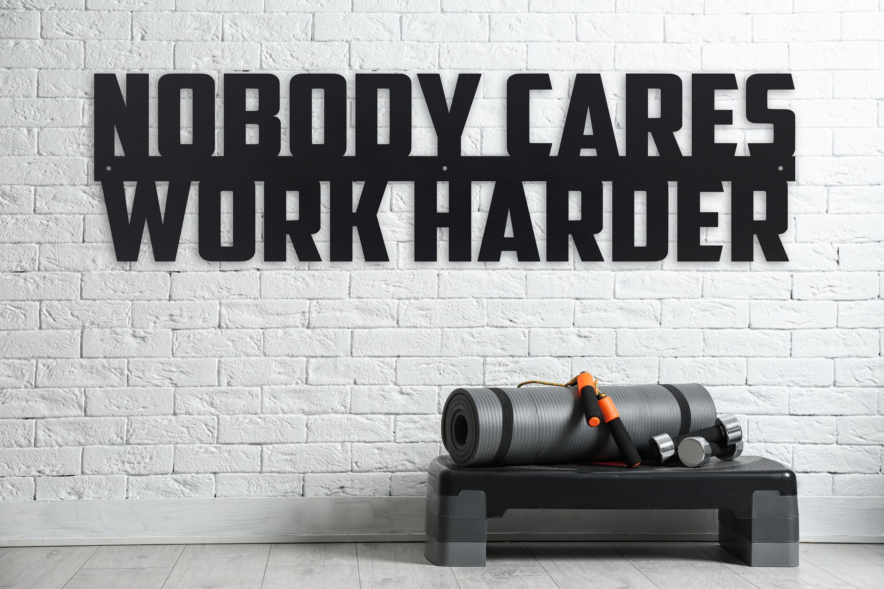 Nobody Cares Work Harder Metal Motivational Quote Sign Home Gym De Maker Table
